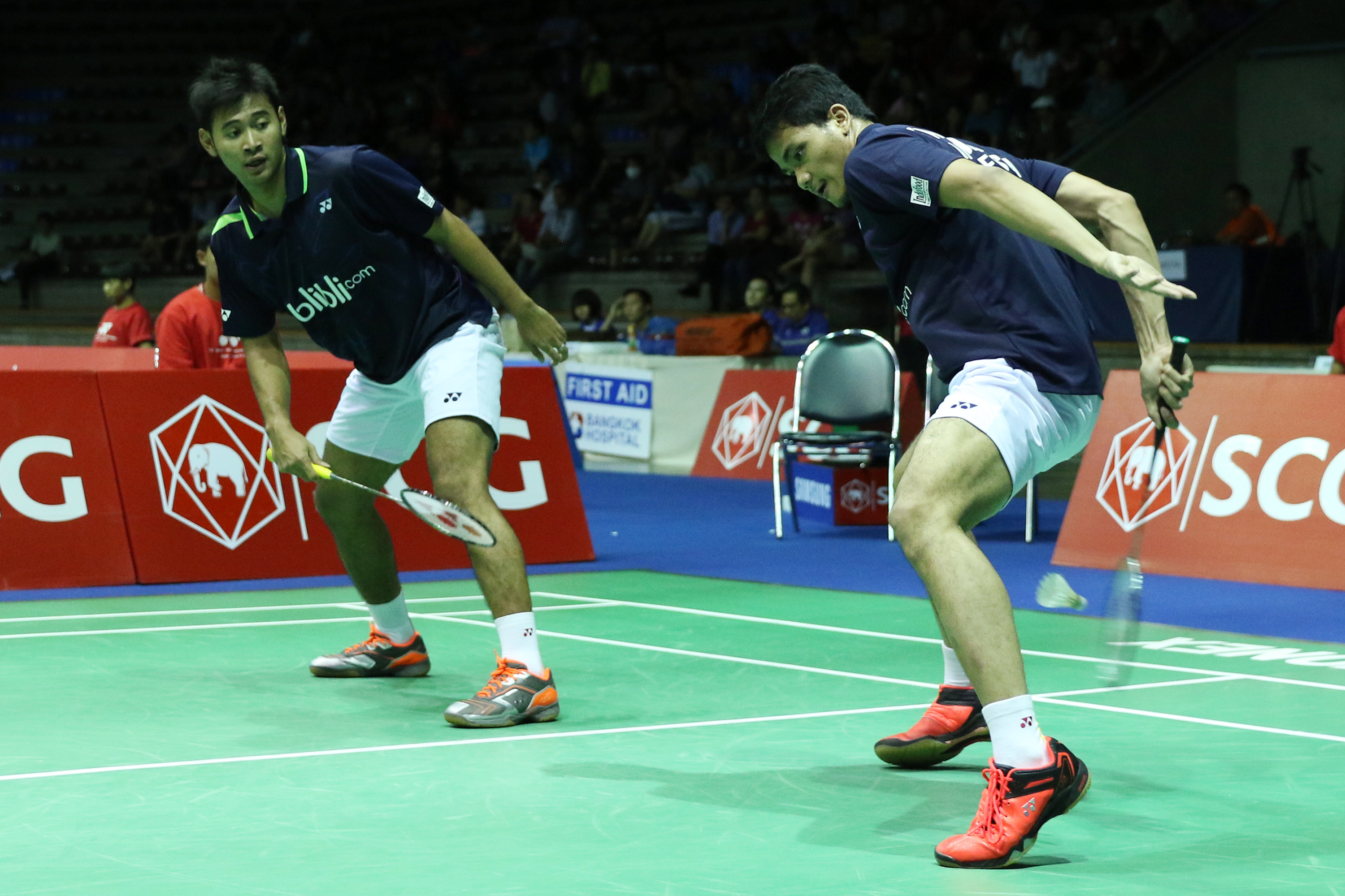 Tiga ganda putra yang bertanding di babak dua hari ini (1/10), sukses melangkahkan kaki ke perempat final Thailand Open Grand Prix Gold 2015. Angga Pratama/Ricky Karanda Suwardi menjadi pasangan pertama yang memastikan tiket delapan besar turnamen.