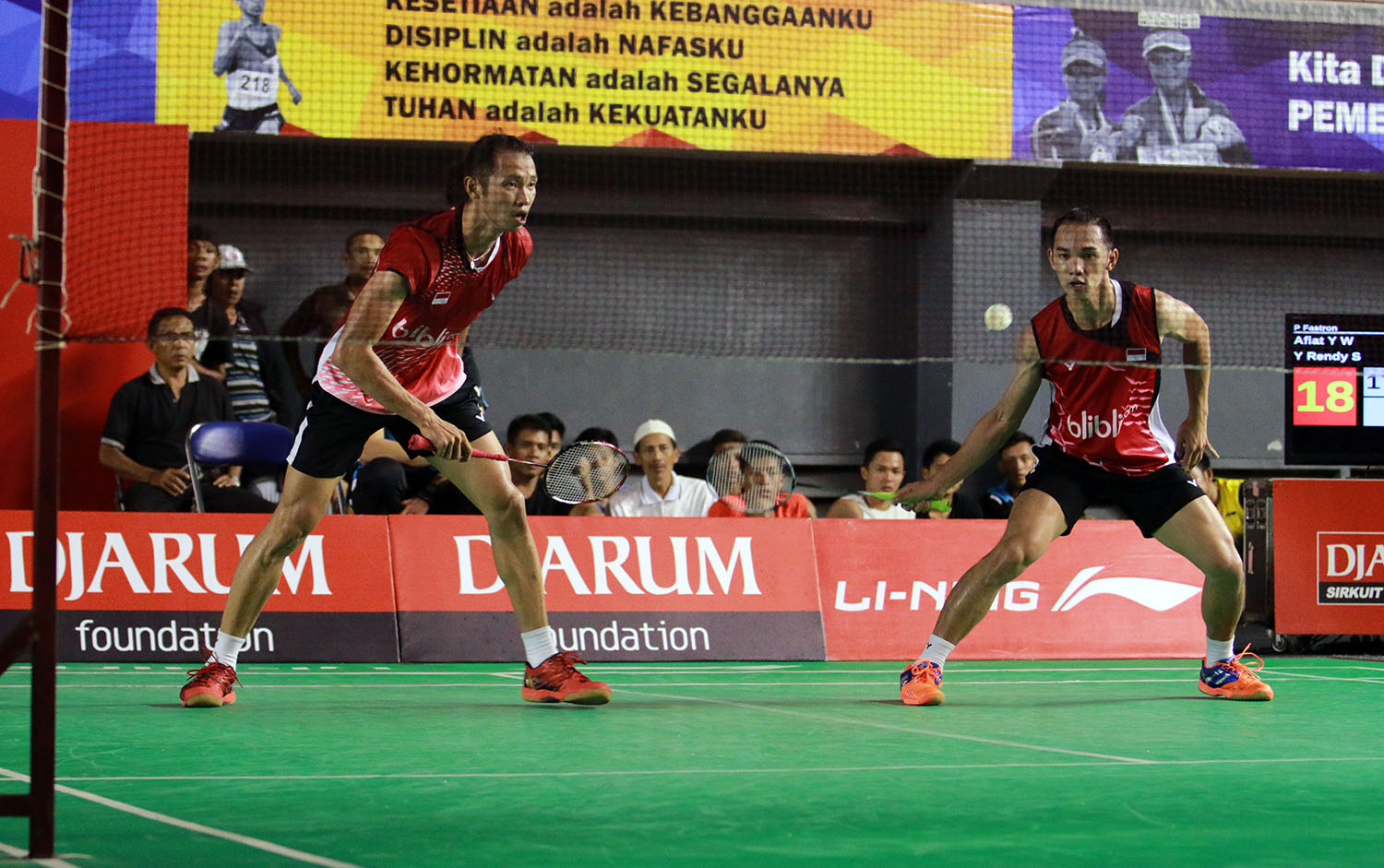 Mataram, 31 Oktober 2015 – Jika di Tiongkok ada atlet berseragam sama dengan nama Luo Y dan Luo Y untuk Luo Ying/Luo Yu, maka PB Djarum memiliki Kurniawan F di dua jersey mereka. Mereka adalah Fran Kurniawan/Fernando Kurniawan. Kakak beradik ini sukses meraih gelar juara ganda putra di Djarum Sirkuit Nasional (Djarum Sirnas) Li Ning Nusa Tenggara Barat Open 2015 usai menang pada final Sabtu (31/10) malam.