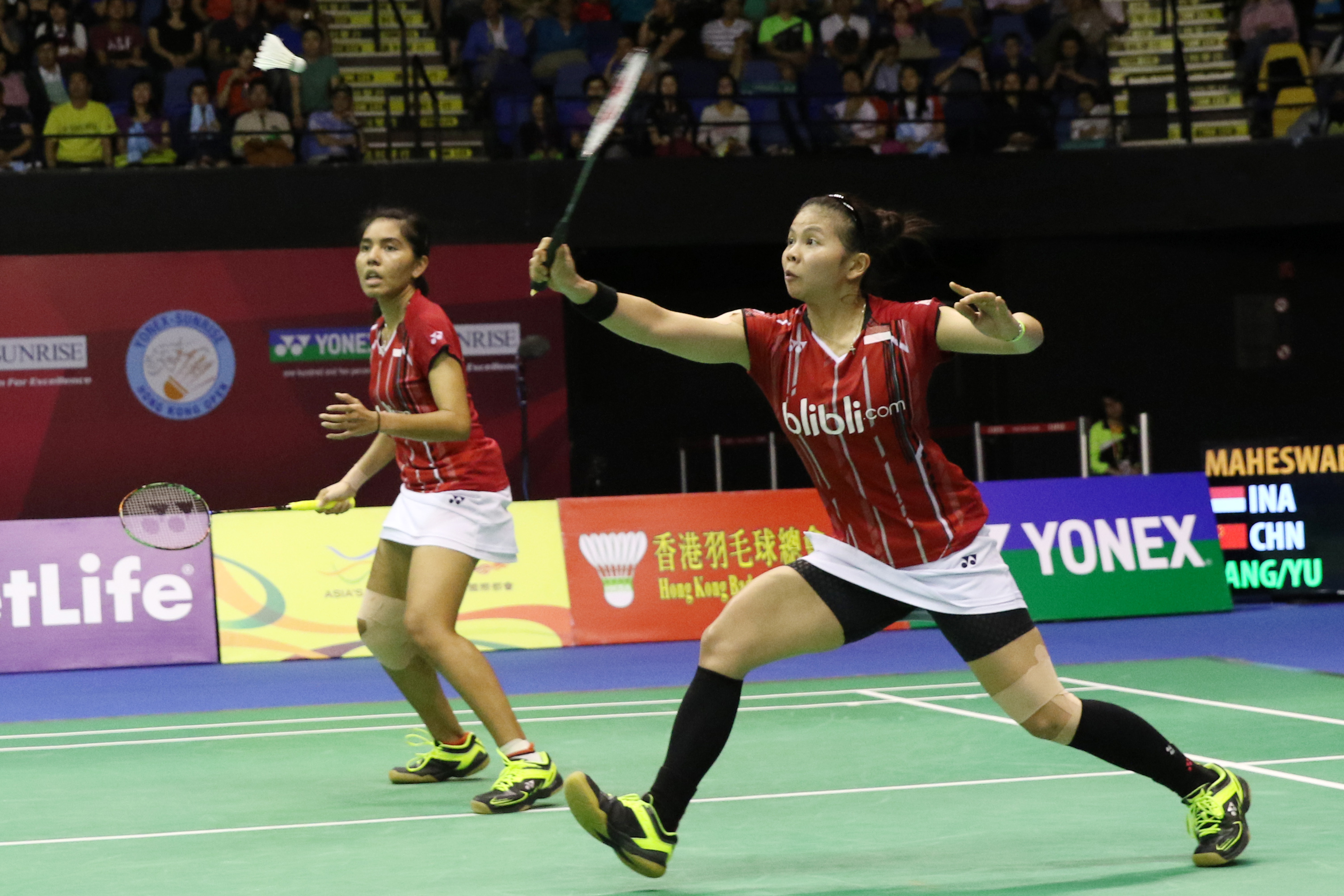Greysia Polii/Nitya Krishinda Maheswari masih belum berhasil melangkahkan kaki ke babak final Hong Kong Open Super Series 2015. Keduanya kalah dari Tang Yuanting/Yu Yang, Tiongkok, 20-22 dan 11-21.