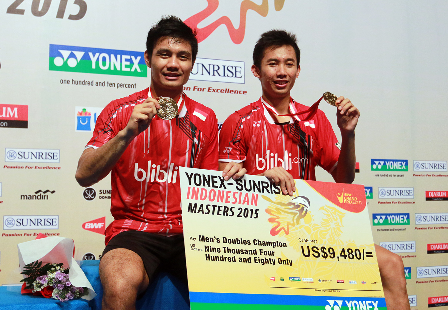 Malang, 6 Desember 2015 – Setelah Tontowi Ahmad/Liliyana Natsir sukses menjadi juara di nomor ganda campuran Yonex-Sunrise Indonesian Masters 2015. Indonesia berhasil menambah pundi gelar melalui nomor ganda putra dimana Berry Angriawan/Rian Agung Saputro sukses meraih gelar grand prix gold pertama setelah dipasangkan satu tahun terakhir ini.