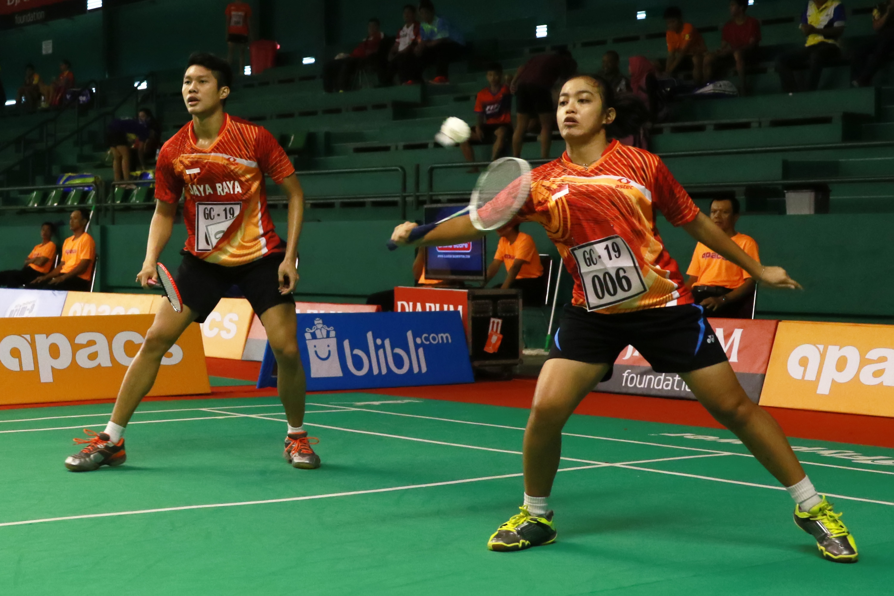 Sementara itu, pertandingan grup YY lainnya dimenangkan Andhika/Mychelle. Pasangan Djrum Kudus ini menang atas unggulan pertama, Beno/Yulfira, 21-18 dan 21-18.
