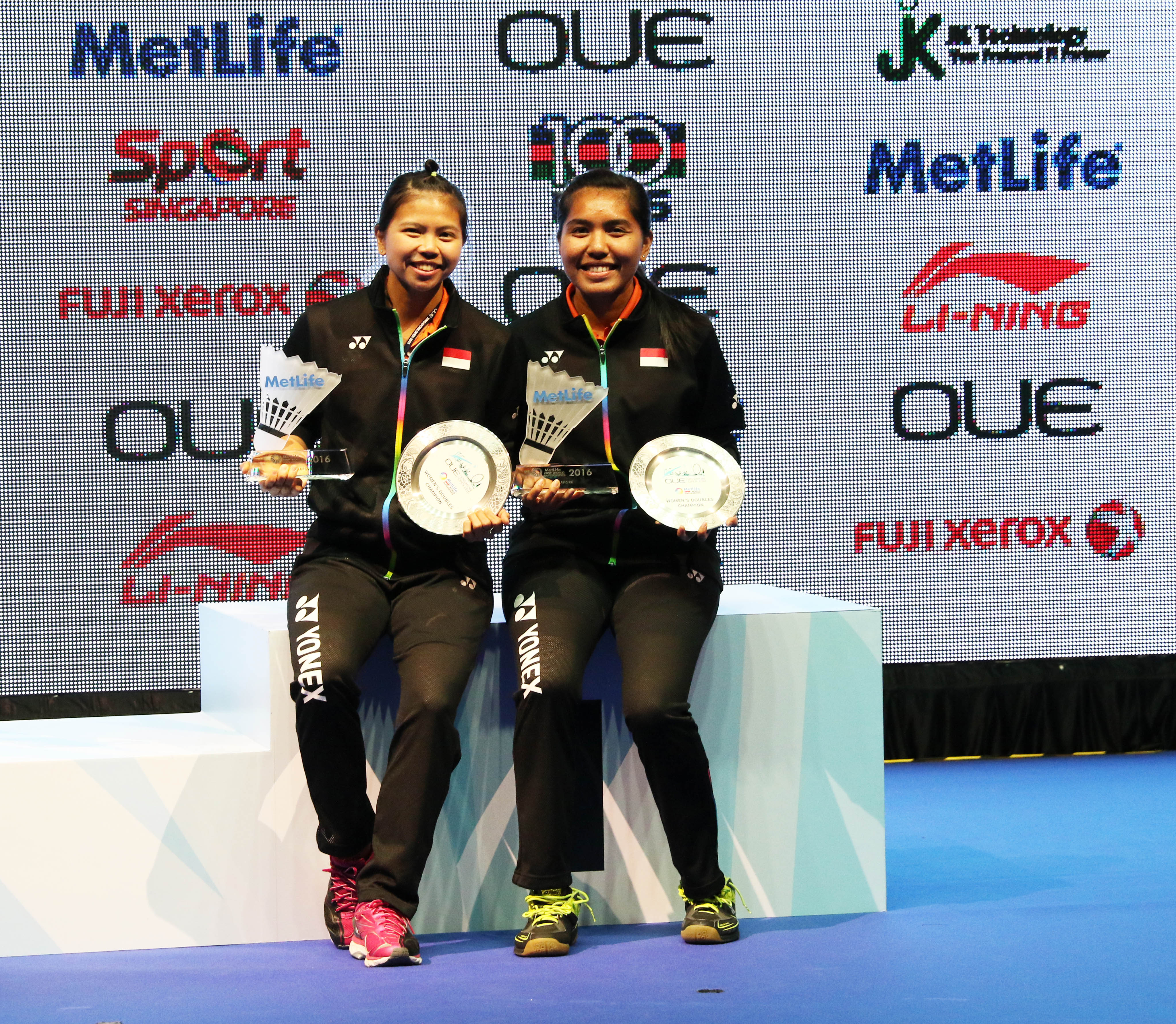 Titel juara Singapore Open Super Series 2106 diraih pasangan Greysia Polii/Nitya Krishinda Maheswari tanpa harus memeras keringat. Pasangan rangking tiga dunia ini otomatis menyandang gelar juara setelah Misaki Matsutomo/Ayaka Takahashi menyatakan mundur di babak final karena Misaki mengalami cedera engkel kaki kiri.