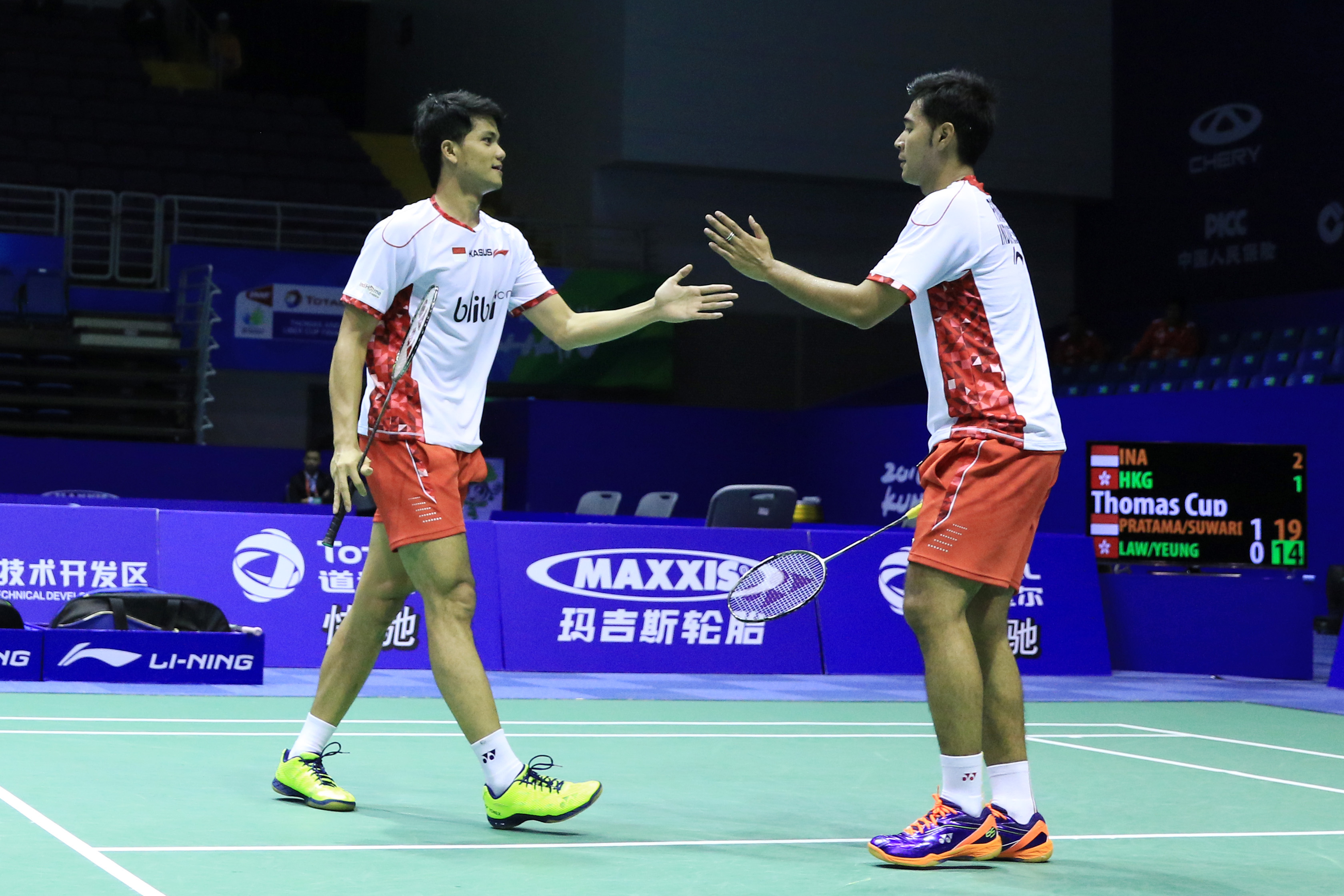 Angga Pratama/Ricky Karanda Suwardi menjadi penentu kemenangan tim Thomas Indonesia atas Hong Kong. Menang 3-1, Indonesia berhak untuk lolos ke babak semifinal Piala Thomas 2016. Pemenang laga peremapat final antara Tiongkok dan Korea akan menjadi calon lawan Indonesia di semifinal.