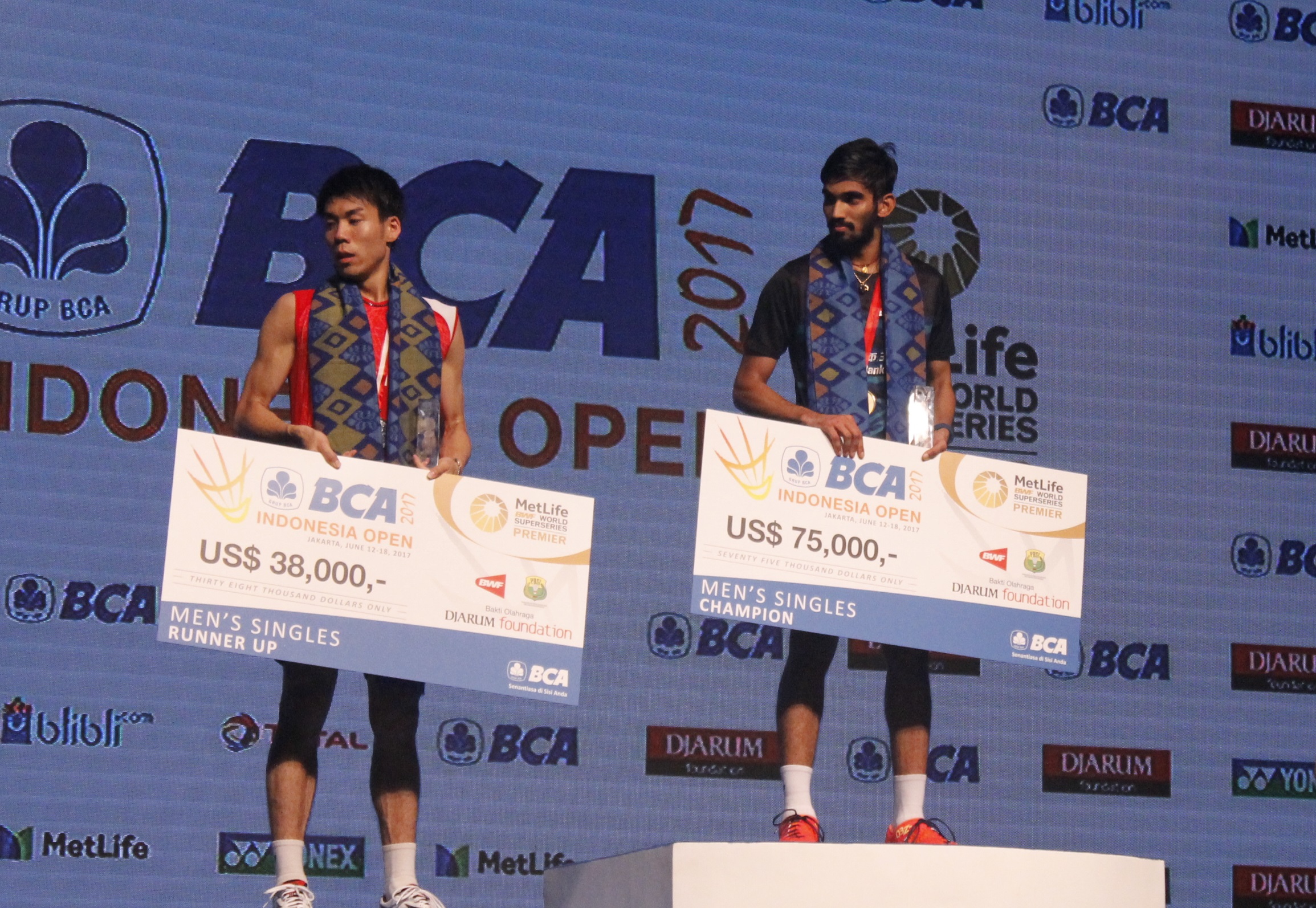Tunggal putra India asuhan Mulyo Handoyo, Srikanth Kidambi, berhasil menaiki podium tertinggi kejuaraan BCA Indonesia Open 2017 di Plenary Hall Jakarta Convention Center pada Minggu (18/06). Srikanth menang mudah atas tunggal putra Jepang, Kazumasa Sakai, dengan skor 21-11 dan 21-19.
