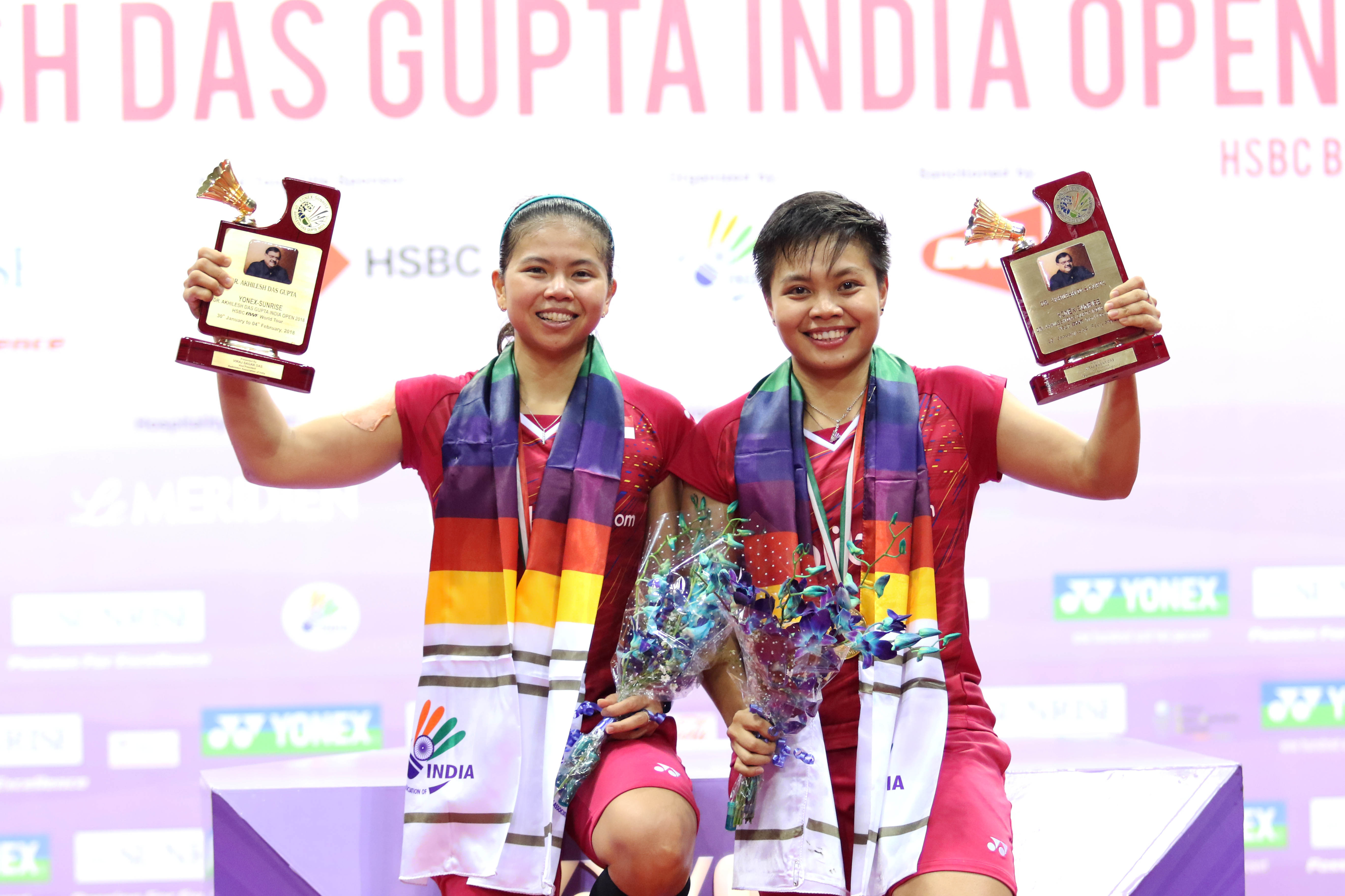 Greysia Polii/Apriyani Rahayu mempersembahkan gelar pertama bagi Indonesia di ajang India Open 2018 BWF World Tour Super 500. Titel juara diraih Greysia/Apriyani usai mengalahkan Jongkolphan Kittiharakul/Rawinda Prajongjai (Thailand), dengan skor 21-18, 21-15.