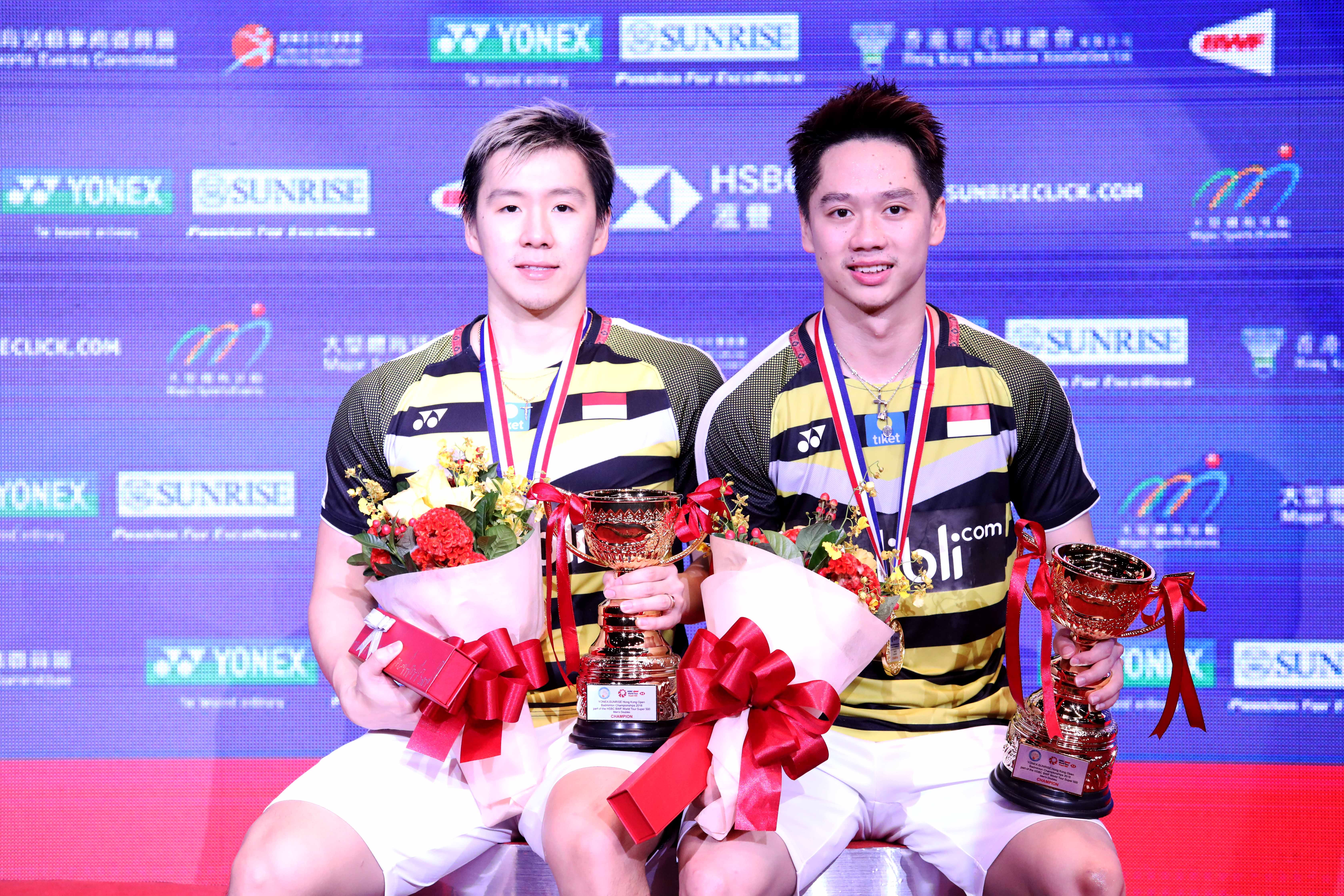 Dua gelar berturut-turut diraih pasangan ganda putra Kevin Sanjaya Sukamuljo/Marcus Fernaldi Gideon dalam tur Asia pada penutup tahun. Setelah pekan lalu mempertahankan gelar di Fuzhou China Open 2018, hari ini mereka juga mempertahankan gelar di Hong Kong Open 2018.