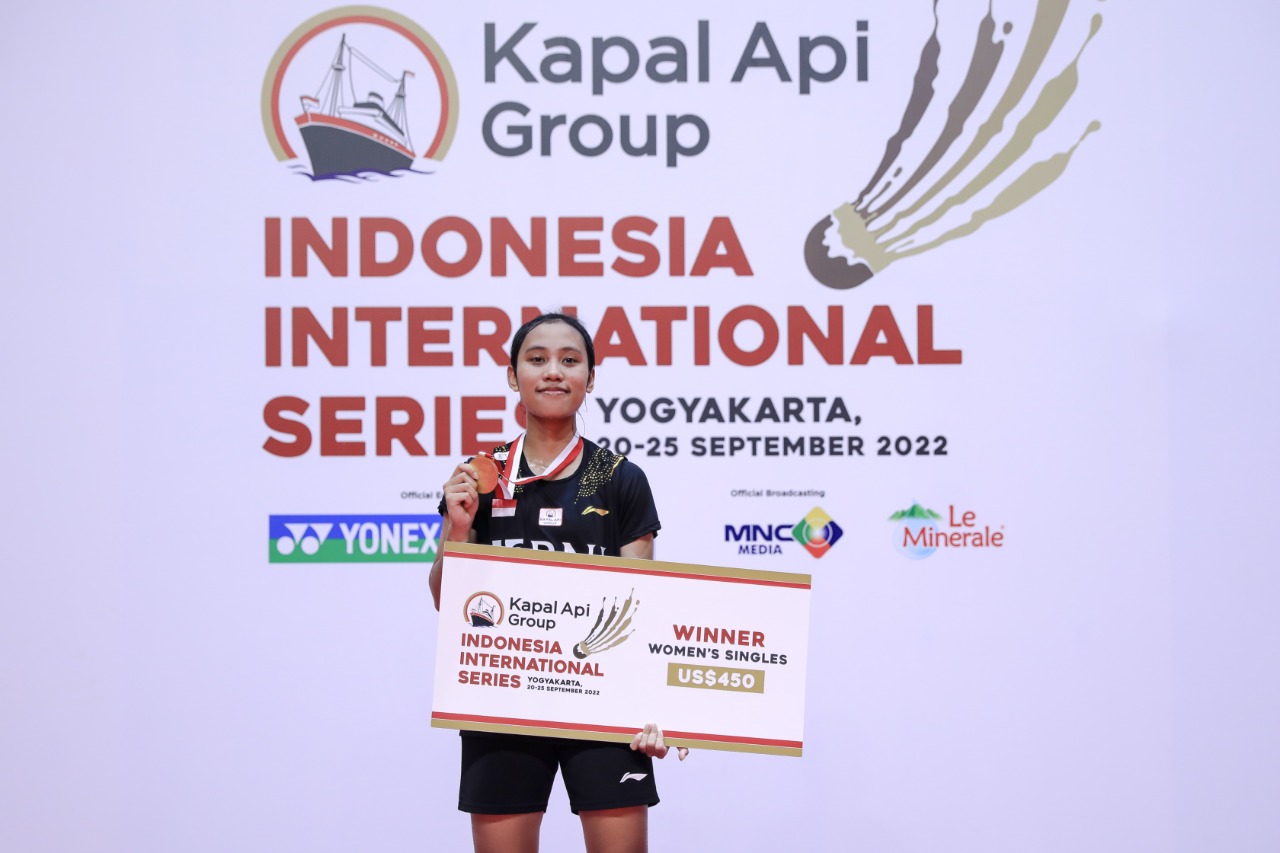 Mutiara Ayu Puspitasari seperti namanya, begitu bersinar terang dalam turnamen bulutangkis Kapal Api Indonesia International Series 2022. Pemain berusia 16 tahun ini akhirnya tampil sebagai yang terbaik di tunggal putri.
