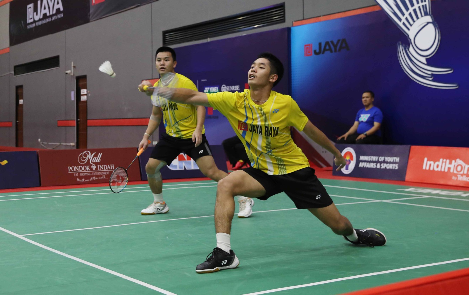 JAKARTA – Ganda putra U-19 Jonatan Gosal/Adrian Pratama menutup turnamen Yonex Sunrise Pembangunan Jaya Raya Junior International Grand Prix 2023 yang berlangsung di GOR PB Jaya Raya Bintaro, Tangerang Selatan dengan kemenangan, Minggu (23/7/2023). Duet binaan PB Jaya Raya unggulan sembilan ini tidak menemui kesulitan menundukkan unggulan dua Malaysia, Muhammad Faiq/Lok Hong Quan 21-12, 21-11.