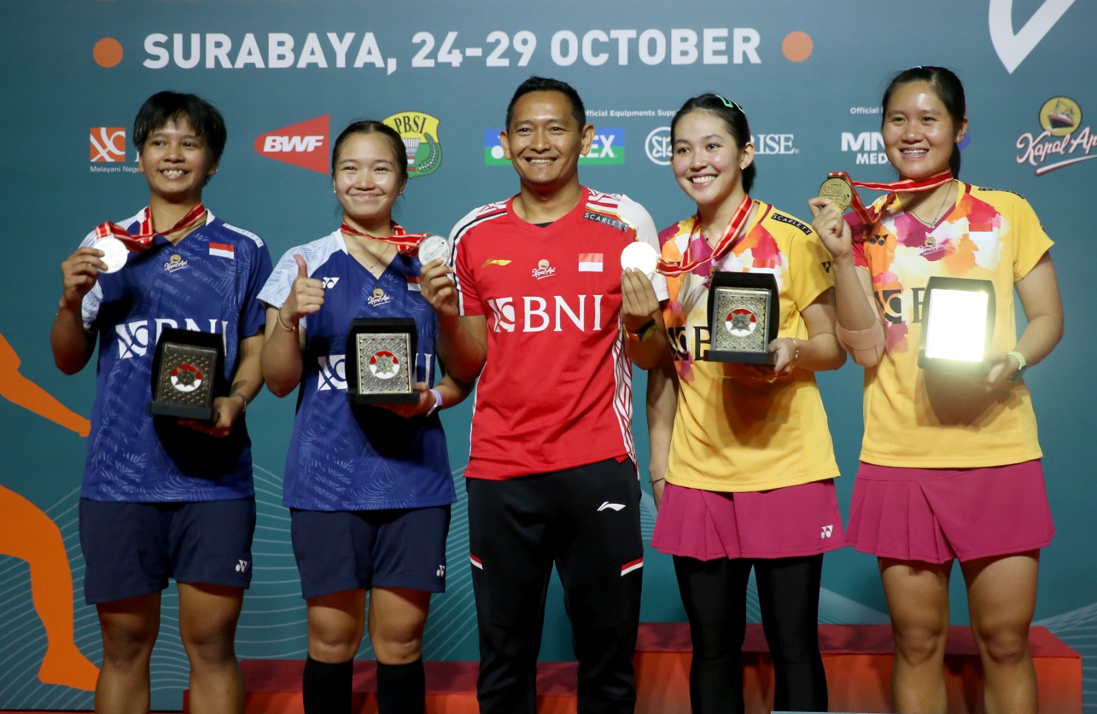 Dalam laga final yang digelar di Jatim Expo, Surabaya, Jawa Timur, Minggu (29/10/2023), pasangan rangking 28 dunia itu menang dengan skor 21-12, 21-16 atas Meilysa/Rachel.