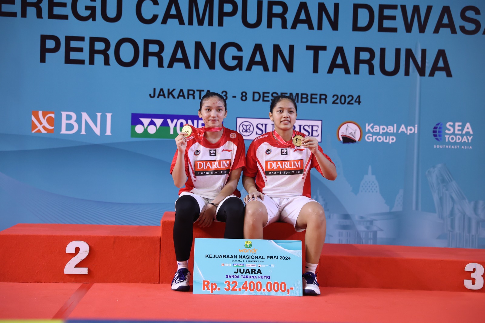 Pasangan asal Jawa Tengah, Ardita Anjani/Titis Maulida Rahma menjadi juara perorangan ganda putri taruna ajang WONDR by BNI Kejurnas PBSI 2024. Dalam laga puncak yang digelar di GOR Universitas Negeri Jakarta (UNJ), Rawamangun, Jakarta Timur, Minggu (8/12/2024) Ardita/Titis mengalahkan rekan satu daerahnya, Angelita Magdalena Yusup/Rasi Joase Niakhe Munajad dengan skor 21-19, 21-16.